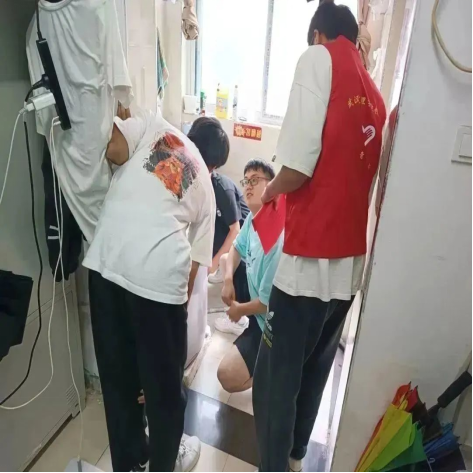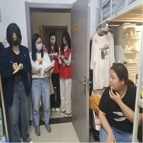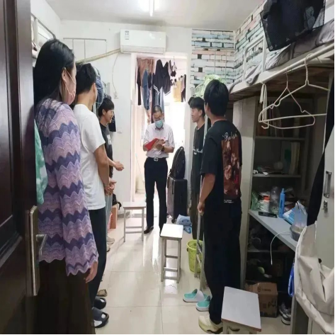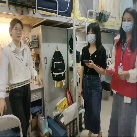 本次参与走访活动的党员老师与学生们依照党员联系学生宿舍信息表前往自己对应的走访寝室,充分做到点对点全覆盖,不遗漏每一个寝室,关爱到每一位学子,为9栋、21栋的大二学生们送去真切的关怀和问候。