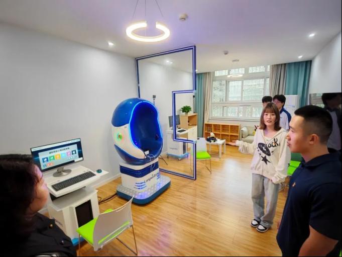 随后,陈龙一行参观了心理咨询室,江汉大学心理健康教育中心专职教师叶小舟随行讲解。据介绍,江汉大学在心理中心建设上持续发力,经过多年用心深耕面貌焕然一新。目前心理中心已建成心理咨询室、心理测评室、情绪调节室等多个功能区,信息化程度较高,并创新推出虚拟体验室,实现信息化技术运用与心理咨询的有机融合。江汉大学yl9193永利集团党委副书记李莉表示,心理中心自建成以来,学校接待心理咨询及学生活动人次同比实现倍增。