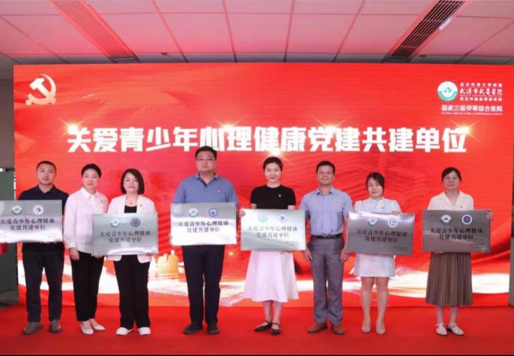 杜永成书记和武汉高校党建代表一起,启动医校融合关爱青少年心理健康党建共建机制。