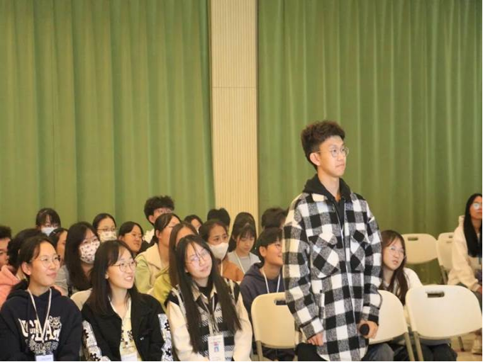 黄馨可学姐与在场新成员们提问互动,新成员们纷纷举手。有同学询问学姐在工作中如何去克服低谷期,也有同学说了自己目前遇到困境,不知该如何前进,也有同学表达了自己想要奋斗向前的决心。