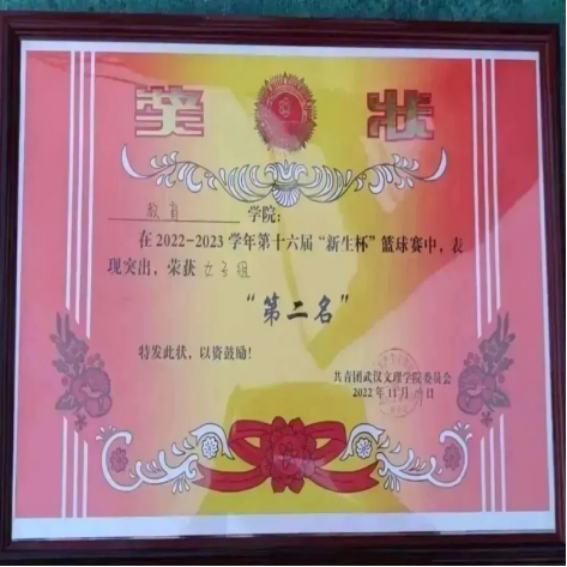 热烈祝贺22级教育学子们在新生杯篮球赛决赛圈中初心如磐,奋楫笃行,被授予突出贡献奖,且yl9193永利集团女篮最终荣获第二名的优秀成绩!