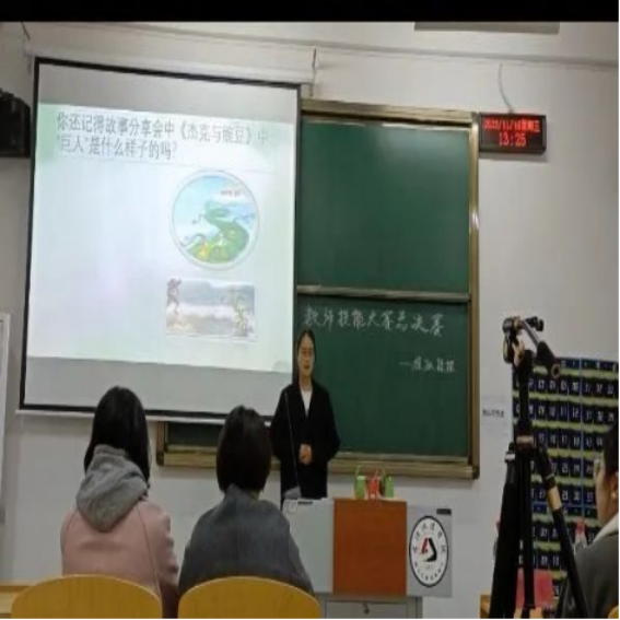 “同学们,我们一起来思考这道题目吧!”比赛从模拟授课赛道拉开序幕,选手们通过互动提问、板书引导及多媒体教具配合等各类方式,在短短五分钟内展现出丰富而趣味性强的课堂。“你希望这节课能带给学生什么?你的教学目标是什么?”评委贺霞老师的提问与点评直指选手比赛过程中的核心问题,为选手们后期培训指明了方向。