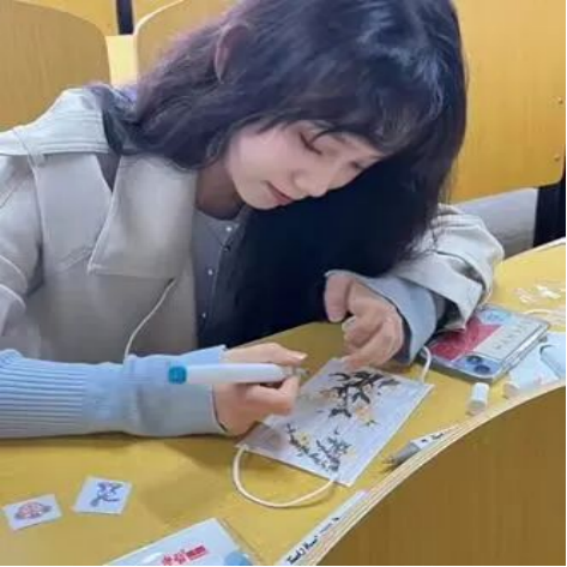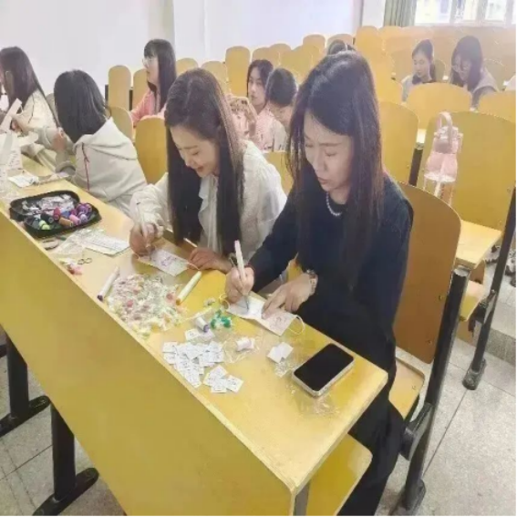 学生党支部书记高凯老师、统战委员高文佳老师、宣传委员刘心阳老师以及辅导员徐珊老师也加入到我们的活动当中与同学们一同进行创作,感受艺术创造的魅力!