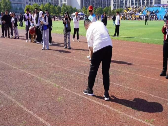 教职工们在赛场上运动的身影为运动会添上了浓墨重彩的一笔