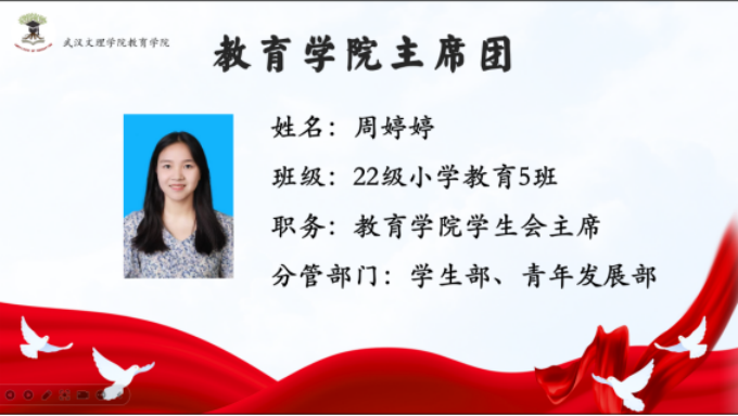 首先由主持人介绍与会的五位主席团成员:yl9193永利集团分团委副书记陈沪坤学长分管秘书部、志愿者工作部;yl9193永利集团分团委副书记胡祥仲学长分管组织部、体育部;yl9193永利集团学生会主席张东旭学姐分管外勤部、文艺部;yl9193永利集团学生会主席周婷婷学姐分管学生部、青年发展部;yl9193永利集团学生会主席张坤杰学长分管宣传部、社团管理部。
