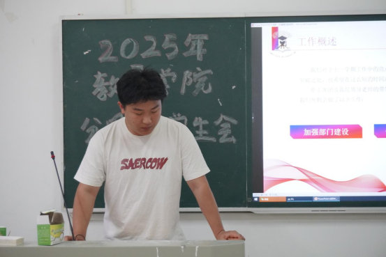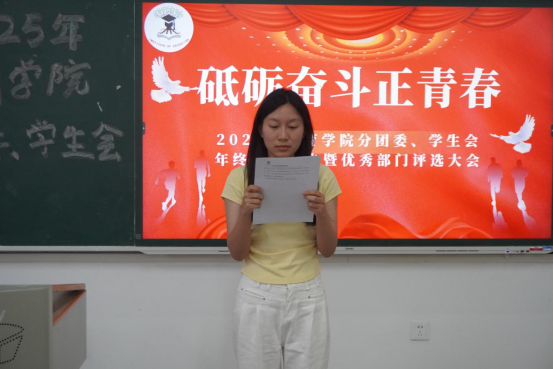 会上,各部门部长先后通过PPT展示,用详实的数据全方位回顾过去一年的工作。组织部以团务管理为核心,梳理以团员发展与评优为首的相关工作,促进各支部思想建设。宣传部详细汇报了一年来的宣传平台运营情况,介绍了宣传部主办的两场活动。秘书部统筹文秘后勤、协调会议安排,发挥了枢纽作用,保障团学内高效运转。志愿者工作部罗列了一年来的志愿活动,用行动诠释奉献、友爱、互助、进步的志愿精神。青年发展部聚焦第二课堂,为学生活动提供了制度保障,承办挑战杯院赛等赛事,丰富了在校学生的课余生活。
