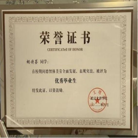 在校期间,连续三年综合测评成绩稳居第一,获2022届“优秀毕业生”,在校期间,共获国家级、校级、院级荣誉40余项,一次性考取小学心理健康教育教师资格证、普通话二级甲等,高级心理健康指导师等技能证书。