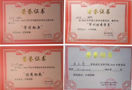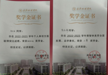 2022年至2023年获得永利集团三等奖学金和精神文明奖以及国家励志奖学金