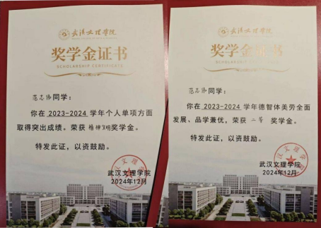 2023年至2024年获得永利集团二等奖学金和精神文明奖以及国家励志奖学金