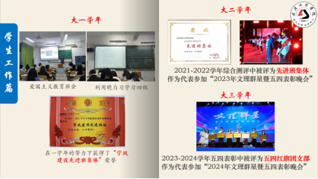 在大学四年的光辉岁月里,项婷同学以卓越的领导力和不懈的努力,为班级和学院的发展做出了显著的贡献。作为班长,她积极推动班级学风建设,在大一时带领班级荣获“学风建设先进班集体”称号,大二时再次获得“先进班集体”荣誉,大三时更是获得“五四红旗团支部”的殊荣。她连续两年代表班级站上文理群星的领奖台,班级至今保持着无一人挂科、无一起诈骗事件、无一例心理问题的优异成绩。