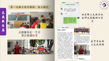她还积极参与社会实践,加入了“新星志愿服务队”,投身于“三下乡”活动。作为一名小学教育专业的学生,她将自己的知识无私地传授给孩子们。在活动结束后,她将这段经历用文字记录下来,并作为通讯员在中青校园上发表。她们的团队因其卓越的表现被多个媒体报道,并被评为省级优秀团队。