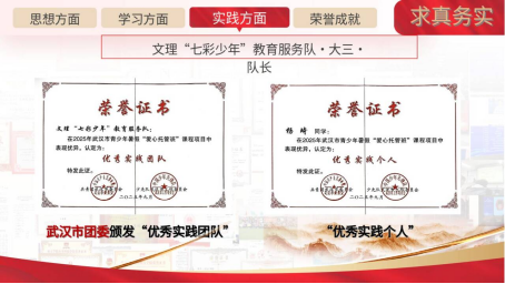 获得由武汉市团委颁发的“优秀实践个人”