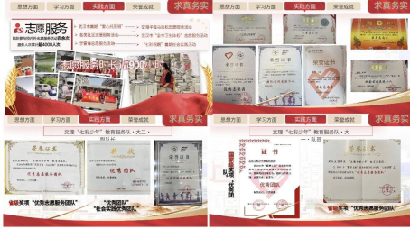 获得“优秀志愿者”“最美志愿者”“学习标兵”“优秀共青团干部”“优秀共青团员”“优秀宣讲员”“优秀部长”“优秀班主任”等荣誉称号