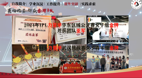 竞赛方面,她从校园健美走秀进阶为国家级选手,先后斩获2024IPL力量举华东区域公开赛女子组金牌、2024IPL力量举武汉挑战赛女子青年组金牌、2024年湖北省第二届大学生健身健美锦标赛女子比基尼健身全场冠军等3枚金牌。