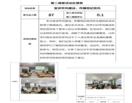 集体荣耀:荣获校级“学风建设先进班级”(专业课100%通过)、校级“第二课堂先进部落”(活动100%参与)、校级“先进班集体”称号。