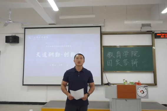 答辩尾声,围绕答辩环节中可精进的细节,评委代表陈龙书记首先给出改进方向,从成果呈现的条理性调整到专业术语的规范使用,逐一提出具体指引,而后对本次答辩活动展开总结,不仅认可大家扎实的专业功底,更对大家在答辩中传递出的学业追求与自我要求予以特别认可。随后他特别强调,国家奖学金绝非单纯的荣誉象征,更意味着一份需时刻铭记的责任。期望学子们以此次答辩为新起点,既要在专业能力上持续深耕、在教育方法上大胆创新,更要始终秉持奉献初心,将个人成长与教育事业发展紧密相连,用实际行动贡献力量。