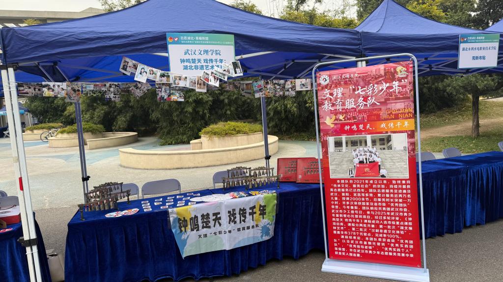 本次活动汇聚了来自全省30余所高校的近百个优秀志愿服务项目。以项目成果展示、经验交流分享、公益集市等多元形式开展,集中展现了湖北青年志愿服务的活力与担当,为全省高校搭建起高效联动的交流平台。我校袁若曦老师带队携“钟鸣楚天,戏传千年”特色体验项目亮相,吸引了众多高校师生与现场群众驻足参与,用青春活力点亮志愿初心。