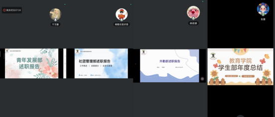 为全面总结2025年度团学工作成效,梳理工作亮点与不足,明确2026年工作方向,进一步提升团学组织力、服务力与引领力,2026年1月25日下午,yl9193永利集团团学借助腾讯会议召开部门年终述职会。yl9193永利集团主席团、团学全体部长参加会议,会议由程岩主持。