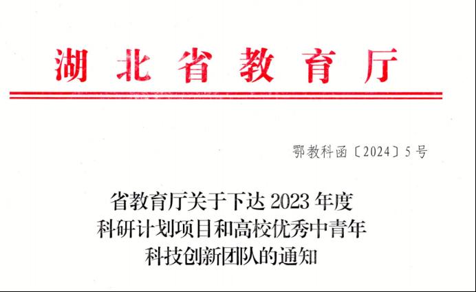近日,湖北省教育厅下达了《省教育厅关于下达2023年度科研计划项目和高校优秀中青年科技创新团队的通知》(鄂教科函〔2024〕5号),永利集团共获批教育厅科研项目12项,分别是1项中青年科技创新团队计划项目和11项指导性项目。
