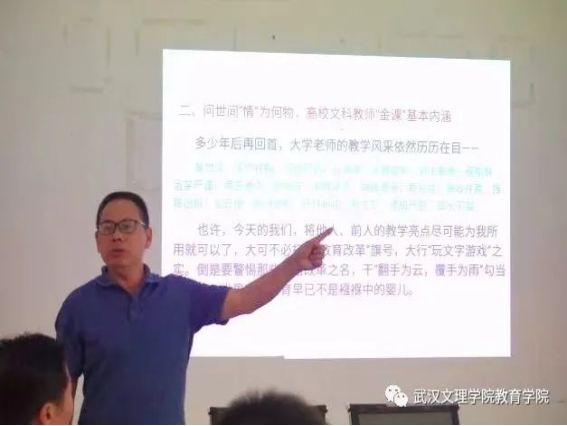 活动伊始,教授杨必武先生以在大潮涌起的时代,要辩证审视高等教育的“变革”与“永恒”为话题,引入“金课”是好课、优质课的说法。让在座的老师以此为思考,作为教师,应该知如何讲好一堂“好课”,如何打造一堂不褪色的“金课”。