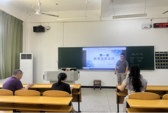 随后,周志远老师登台讲授教育学课程开篇——“教育的本质”。周老师授课时声音洪亮,语调与语速拿捏精准,尽显教学风范。但在评课环节,老师们也客观指出其有待完善之处:应减少口头语的使用频率,为教学语言注入更多专业性与规范性;精心雕琢 PPT 课件,塑造独特风格;重视板书的提纲挈领作用;强化与学生的互动交流,适度放缓教学节奏,给予学生更充裕的思考时间。