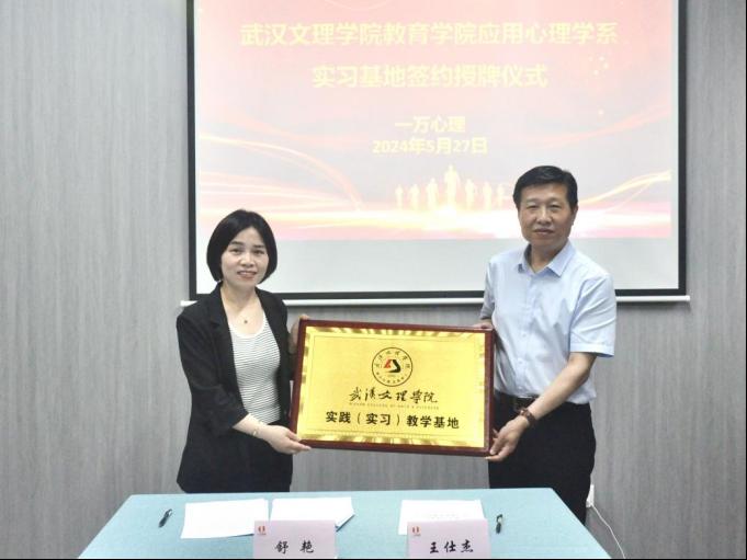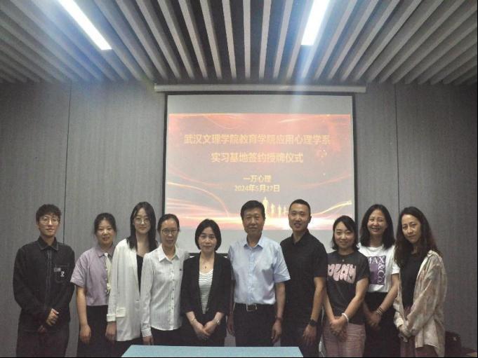 5月27日上午,yl9193永利集团与一万心理在武汉光谷举行实习基地签约授牌仪式。yl9193永利集团院长王仕杰、党总支书记陈龙、教学副院长贺霞、应用心理学系主任王梦、应用心理学系教研室主任张凤贤等出席了此次签约仪式,一万心理总经理舒艳、一万心理咨询部部长陈梅对文理学院领导的到来表示了热烈欢迎。